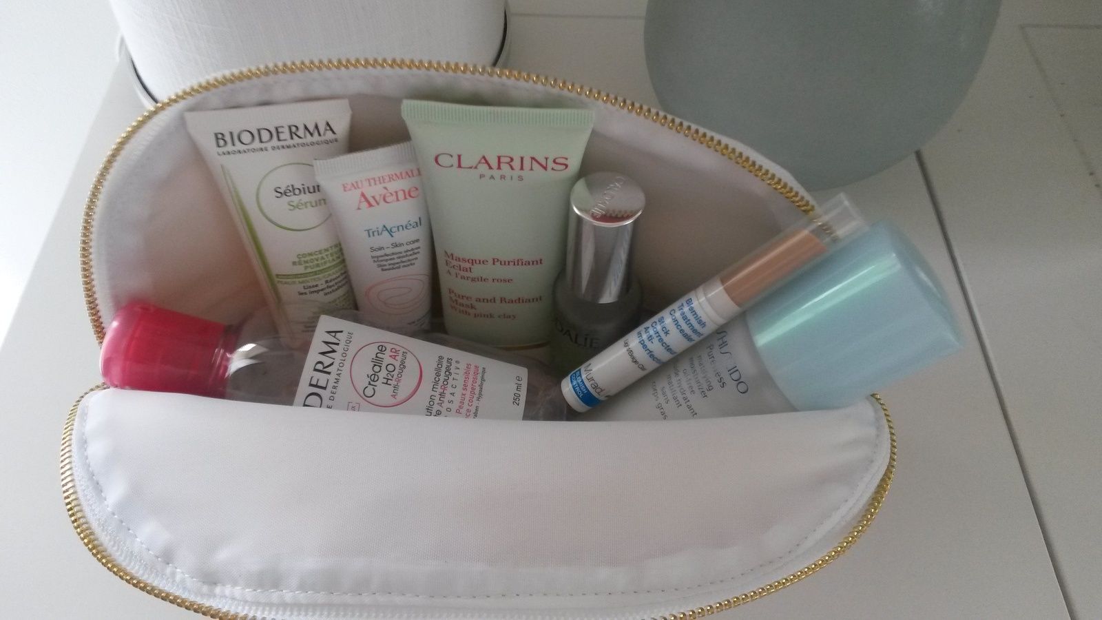 | Caudalie : Eau de beauté, Avène Triacnéal, Bioderma créaline H20, Shiseido Pureness fluide hydratant matifiant, Clarins masque Pureté Eclat |